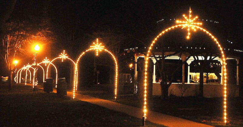 The display of beautifully decorated trees is nestled in the heart of Town Square Park, 301 N Bridge St., Yorkville.
